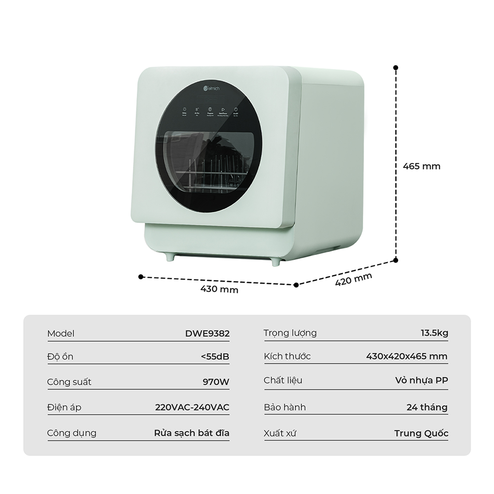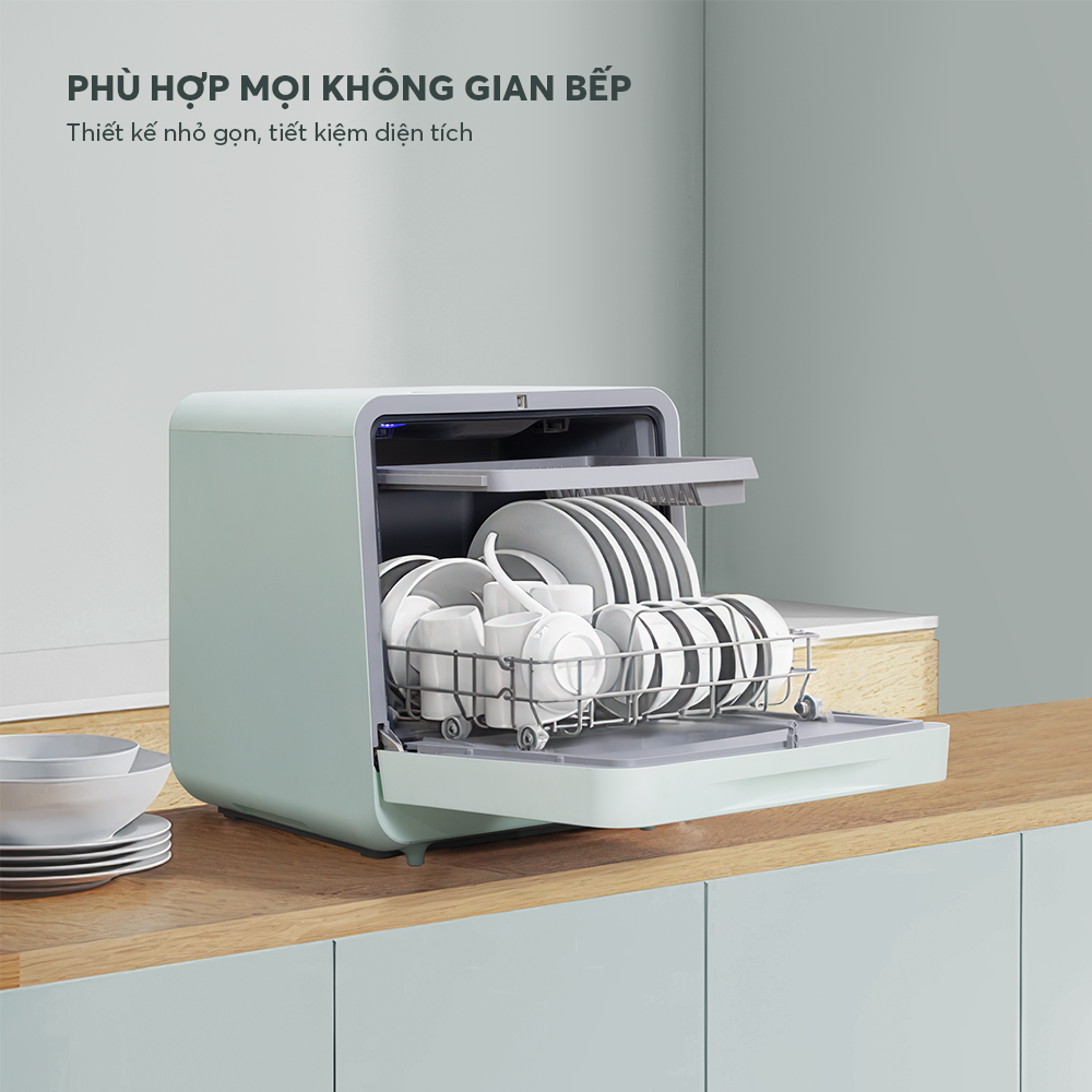 Khác biệt với những mẫu máy rửa bát cồng kềnh, tốn diện tích, Elmich DWE9382 sở hữu thiết kế nhỏ gọn, linh hoạt, phù hợp với nhiều không gian bếp hiện đại từ căn hộ chung cư đến nhà phố. Máy không yêu cầu lắp âm, dễ dàng bố trí ở mọi vị trí trong khu vực bếp mà không chiếm nhiều diện tích.