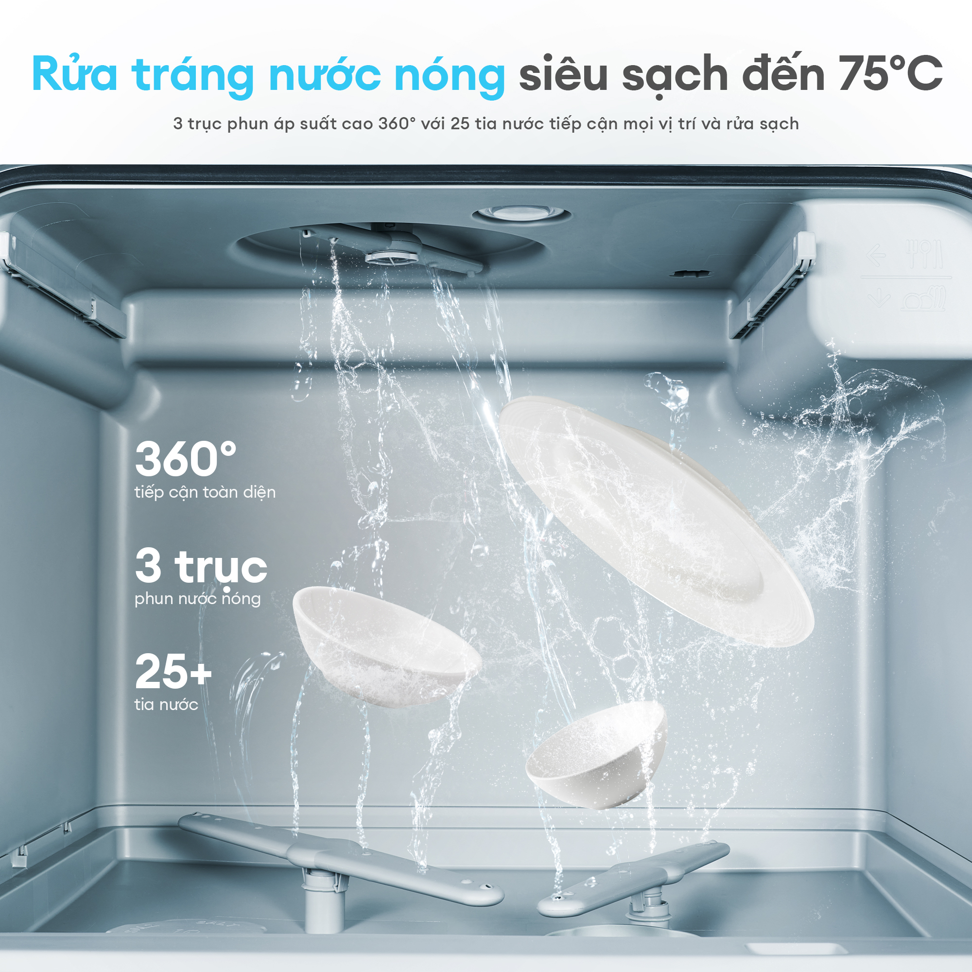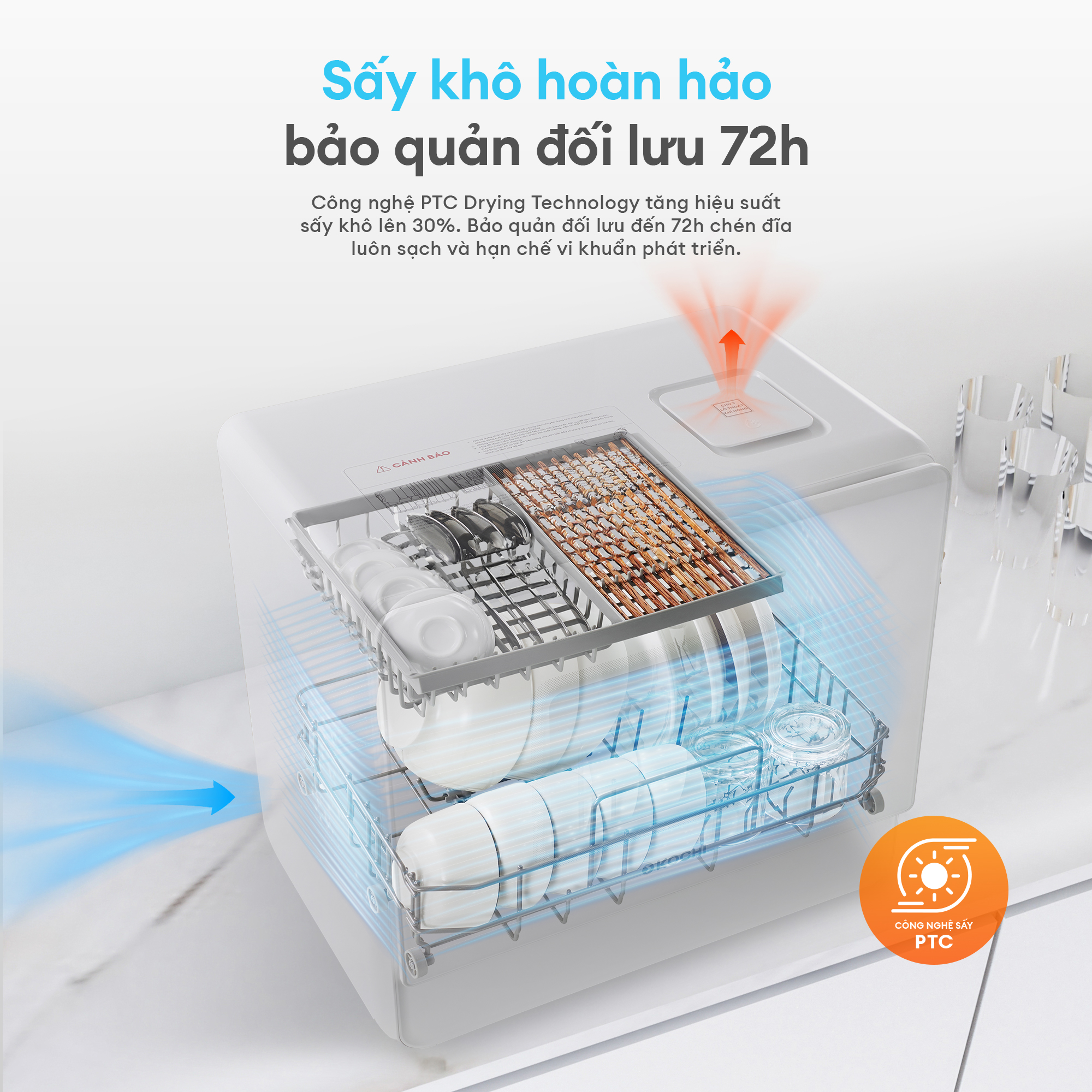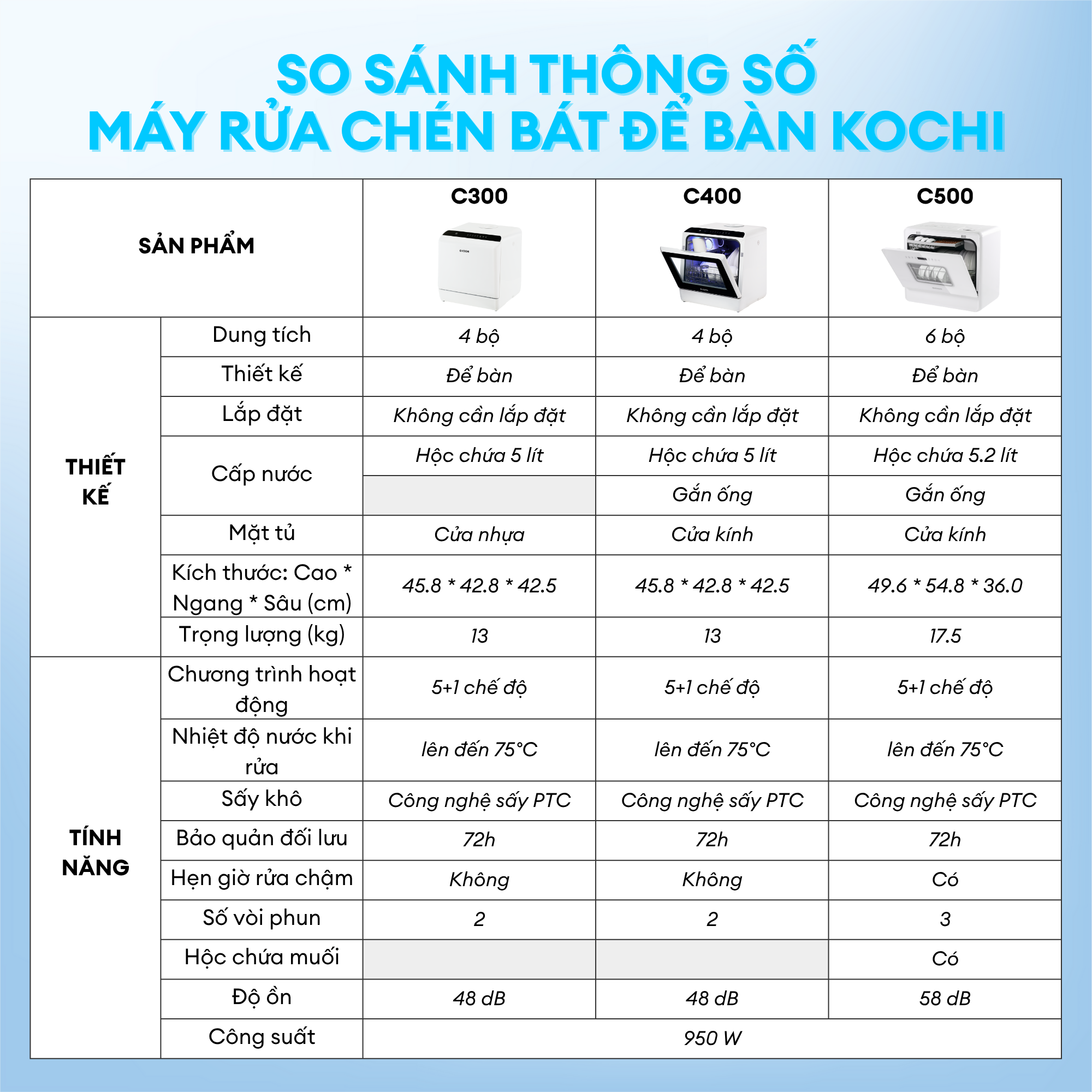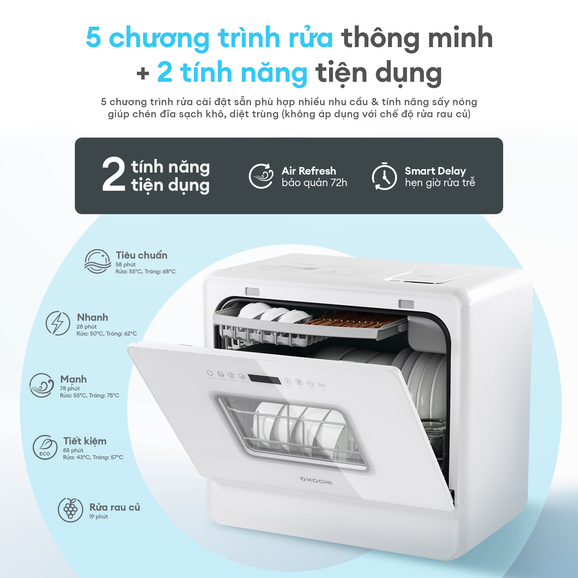 [MỚI RA MẮT ] Máy rửa chén bát để bàn KOCHI C500 – Sức chứa 6 bộ – Không cần lắp đặt – 5+1 chương trình rửa, sấy nóng